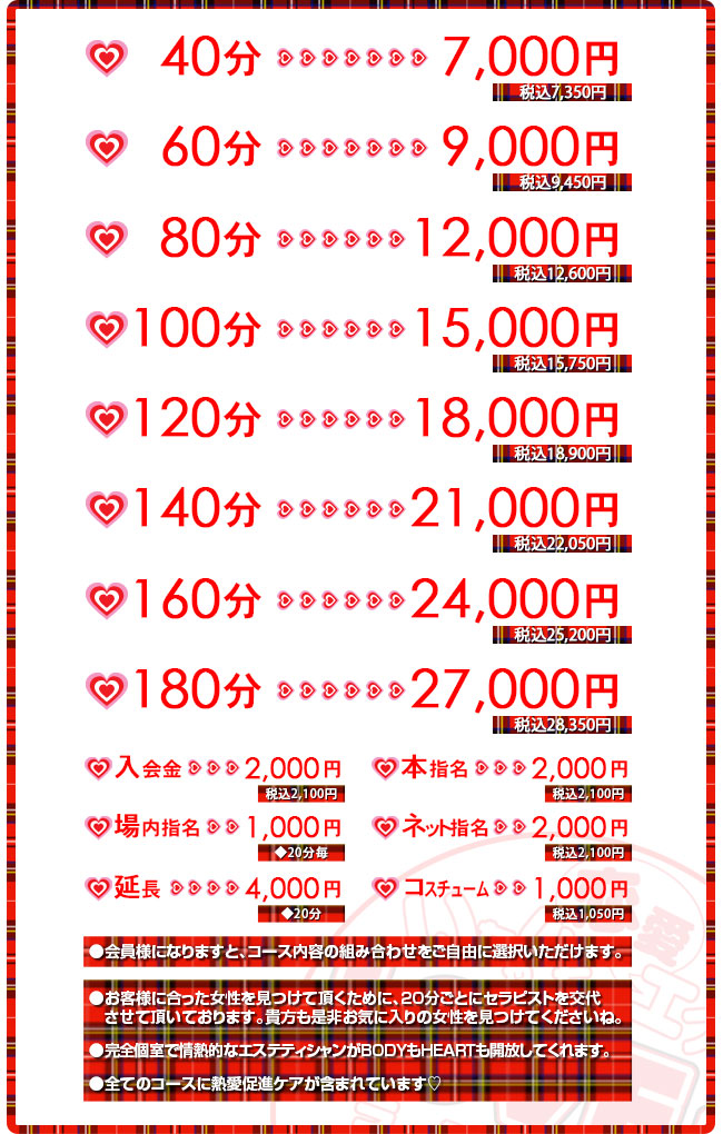 万が一、セラピストからチップの要求がありましたら、店長にお申し付け下さいませ。